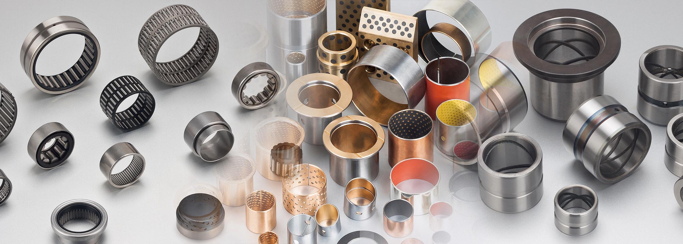 主要产品:冲压外圈滚针轴承、实体套圈滚针轴承、推力平面滚针轴承、无油润滑轴承、边界润滑轴承、JF双金属轴承、青铜卷制轴承、固体润滑轴承、青铜铸造轴套。
